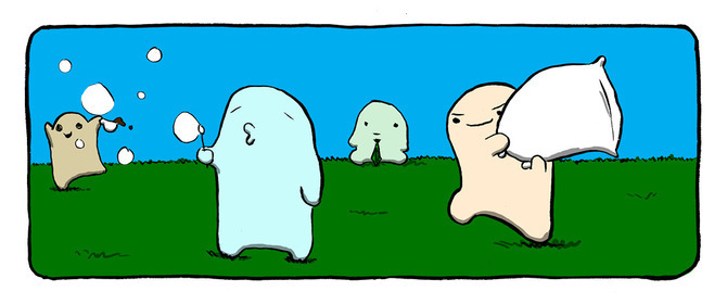 A generous portion of wee adorable tales. This book is a collection of fifteen short comics on various themes plus a commentary comic that flows across the bottom of the pages.