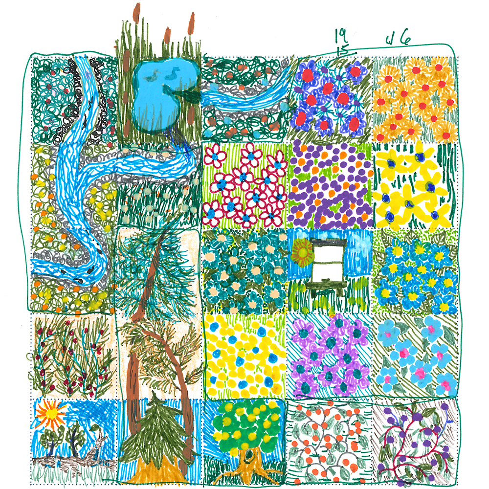 Copse Caretaker is a slow roll-and-draw, print-and-play game for every age and drawing skill level. It is about having fun and building up a little forest all your own.