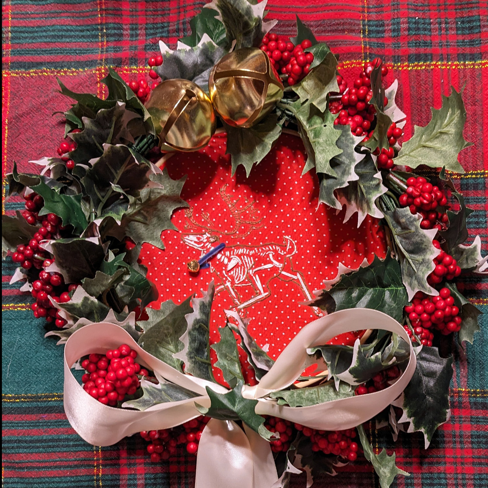 This purchase includes the digital embroidery pattern (letter paper) with detailed photos of the finished product and quick guide for the embroidery stitches. The pattern uses straight stitch, fly stitch, running stitch, stem stitch, U/chain stitch, and French knot. Pattern includes placing an optional ribbon and bell!